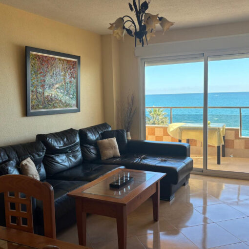 Luxe vakantie appartement te huur aan het strand van Fuengirola. Met 2 slaapkamers, aircondicioning en terras met zeezicht. Winkels, supermarkt, restaurants, terrasjes, barretjes en openbaar vervoer op loopafstand. Ruime zonnige huiskamer met lounge, eetkamer en schuifdeuren naar het terras. Zuidwest georiënteerd terras met zonneschermen, terras meubels.